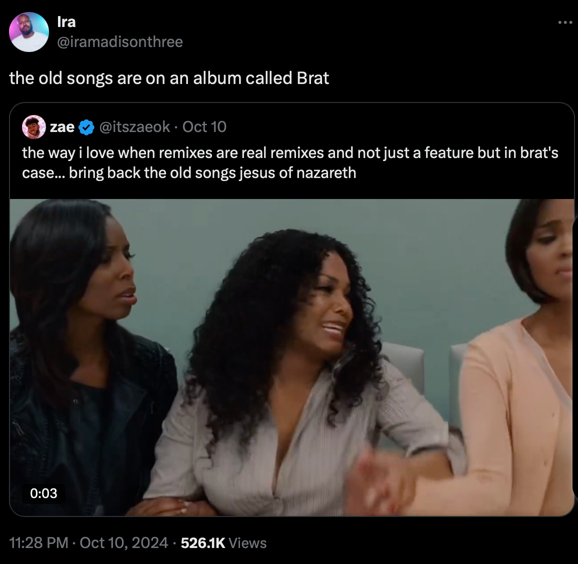 I redownloaded Instagram this week, and despite being immediately reminded of all of the reasons I deleted it in the first place, I also felt grateful to witness the initial reactions of friends, artists, and other people I admire to “baicdbasb” (brat and it's completely different but also still brat, obviously). I was excited to see one of my oomfs’ excitement over the remix of Apple feat. the japanese house, one of my favorite artists. I loved seeing Instagram stories from friends who listen to various genres and artists sharing their favorite artists’ features. I was also pleasantly reminded of why social media apps like Instagram, despite their many issues, can be valuable.